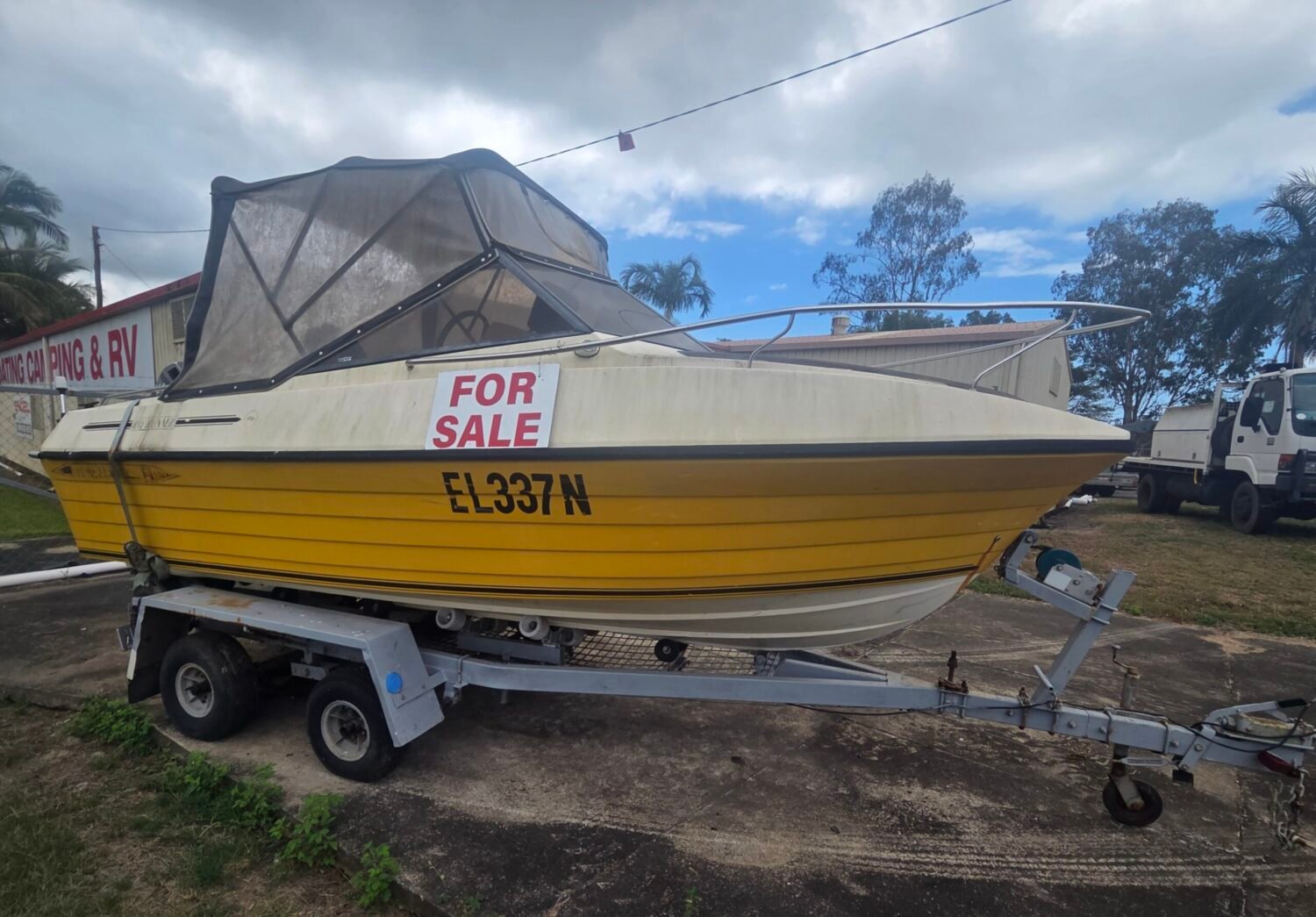 Enjoy your fishing trips in comfort with this 5.16m Coxcraft with cab a full Bimini giving protection from the sun. Powered by a 115HP Johnson 2 strokes and includes 10″ hummingbird, 10″ Lowrance, 45lt fuel tank, 2 underfloor eskies, new marine and FM radio and all safety gear.