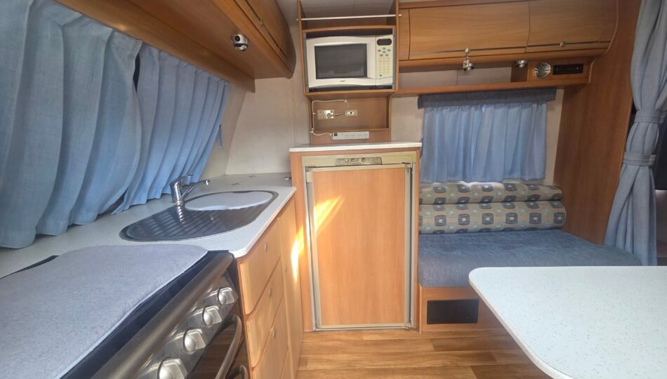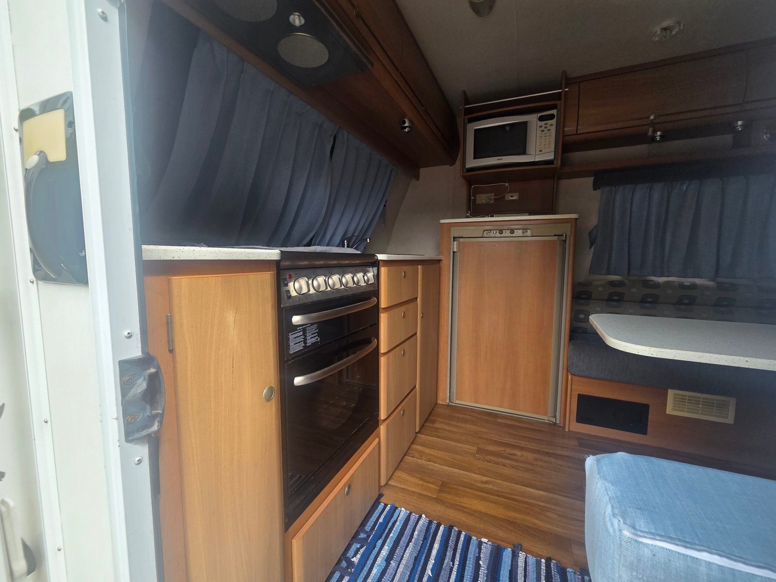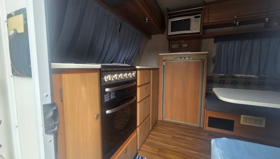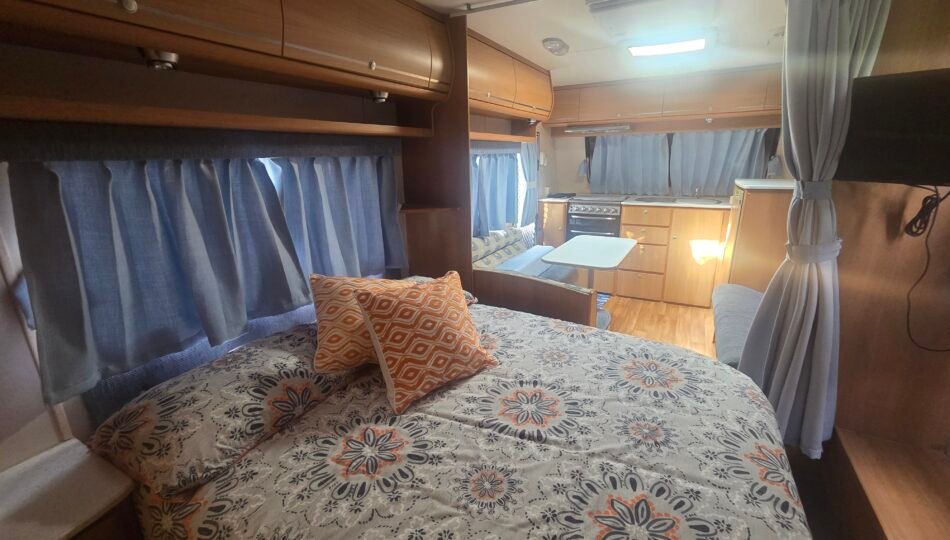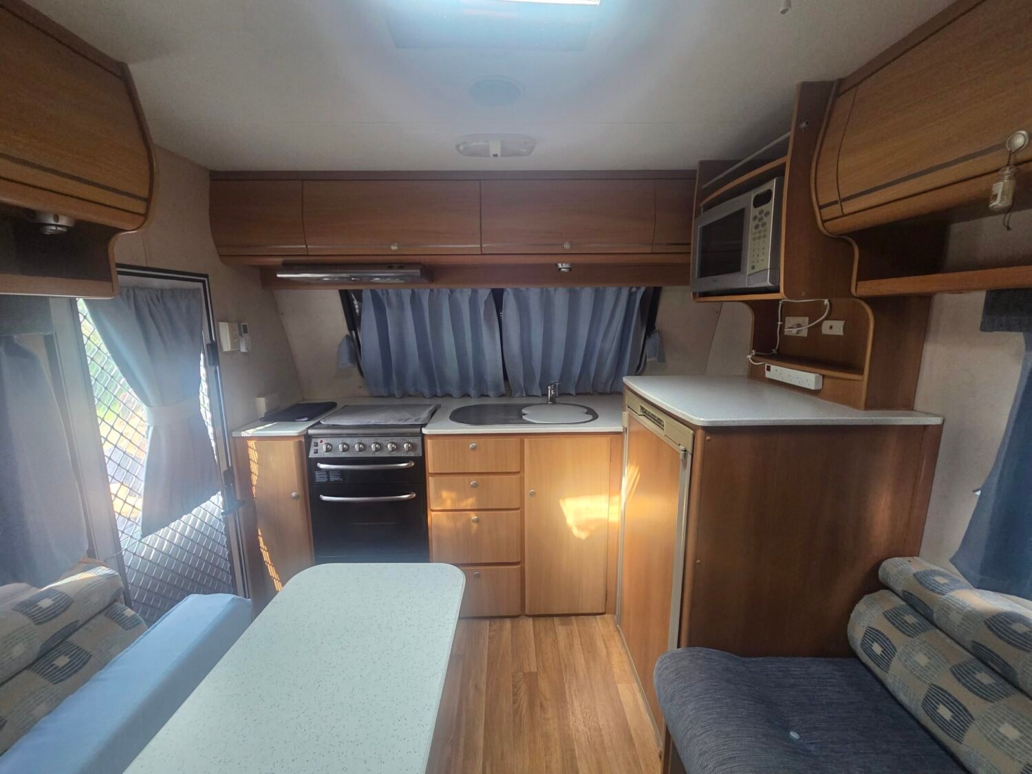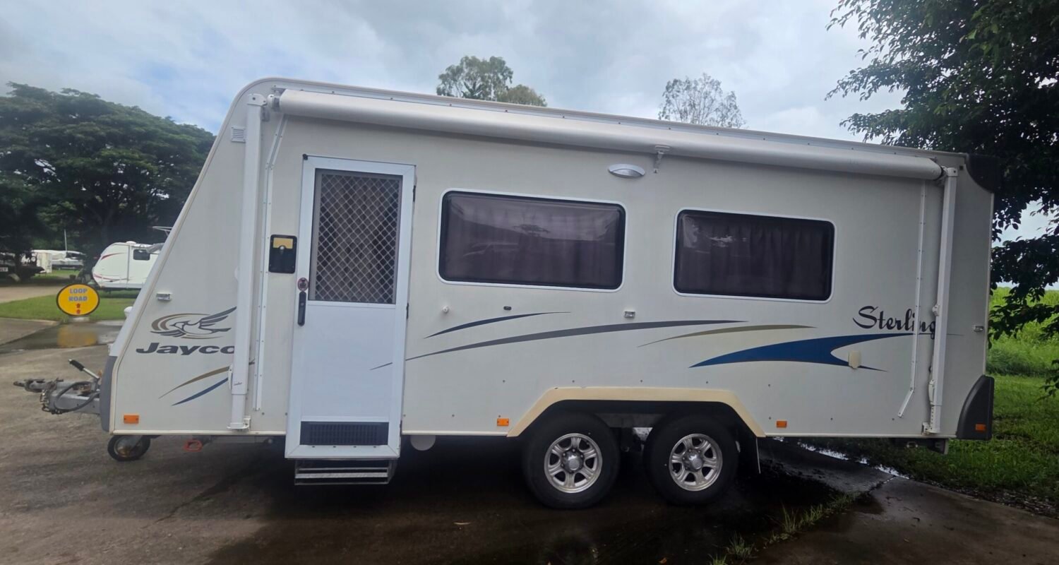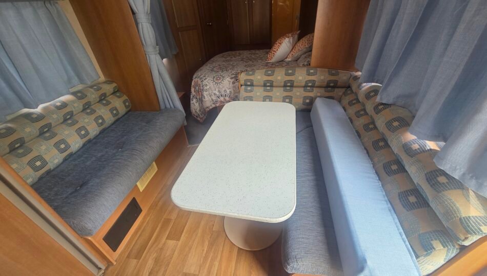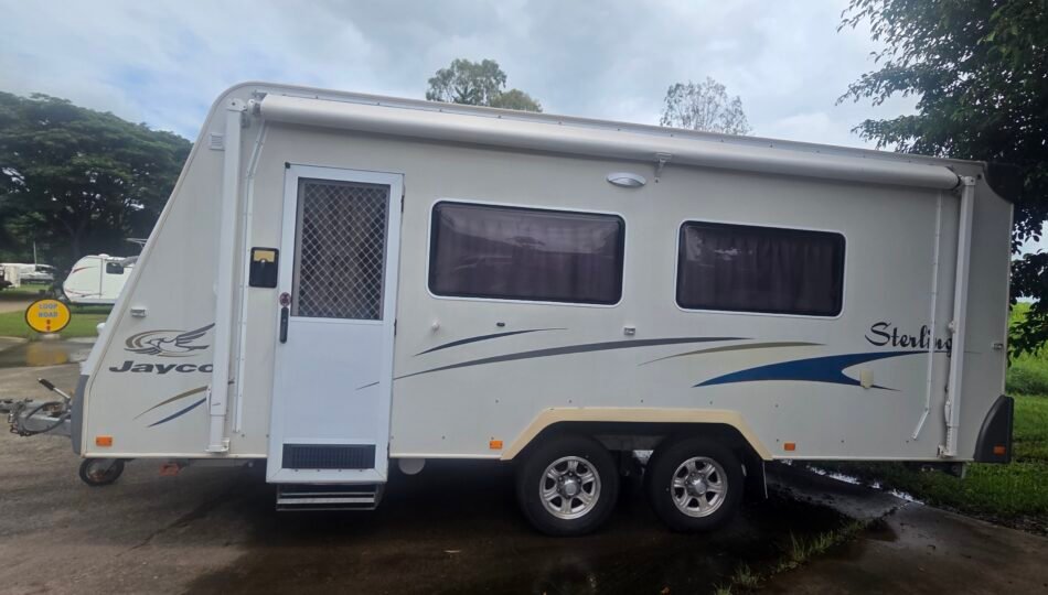 This 2007 19′ 6 Jayco sterling caravan is very well-maintained couple’s van.  Full kitchen including gas cooktop/grill/oven, 3-way Fridge/Freezer and microwave. With all the comforts of home the interior comes with a double bed, tv, separate toilet and shower ensuite, full wardrobe and lots of cupboards throughout.  Separate second lounge and cafe lounge with adjustable table- also cushion included to make into another bed.