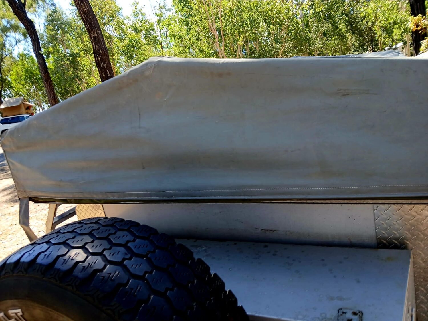 1997 Cameron Canvas Camper Trailer is ready to go on that camping trip with full awning, bed, toolbox, jerry cans and a kayak.