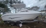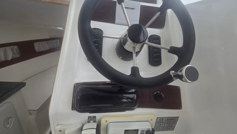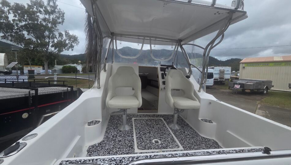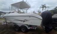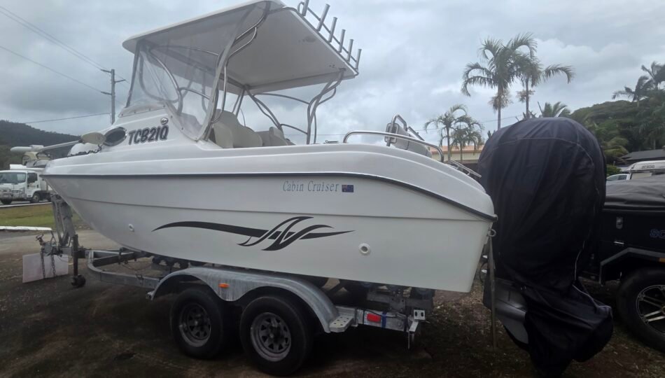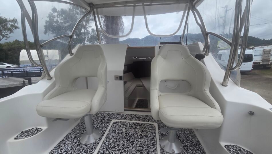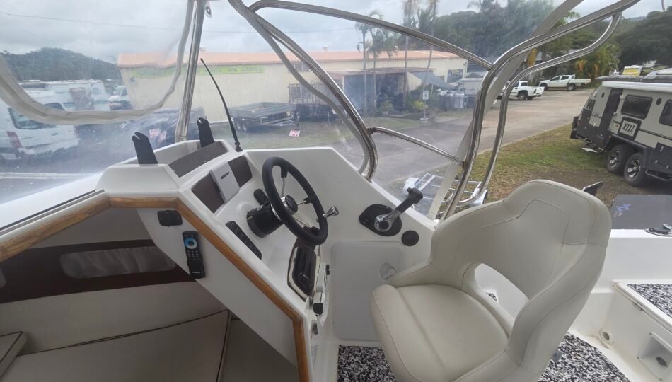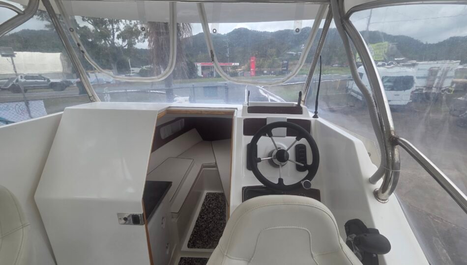Enjoy your fishing trip or family cruising around the islands in this well presented 6.1m 2015 Waterwish 6.1 m Cabin Cruiser Fibreglass boat. Powered by a 2021 150 HP Mercury Outboards with 120hours, delivering easy starting, great performance, and renowned reliability. It has a GPS remote Motorguide, 12″ Lowrance Depth Sounder and VHF marine radio, epirb, fire extinguisher, toilet, sink, and eziglide.