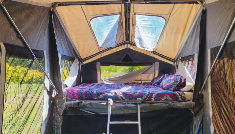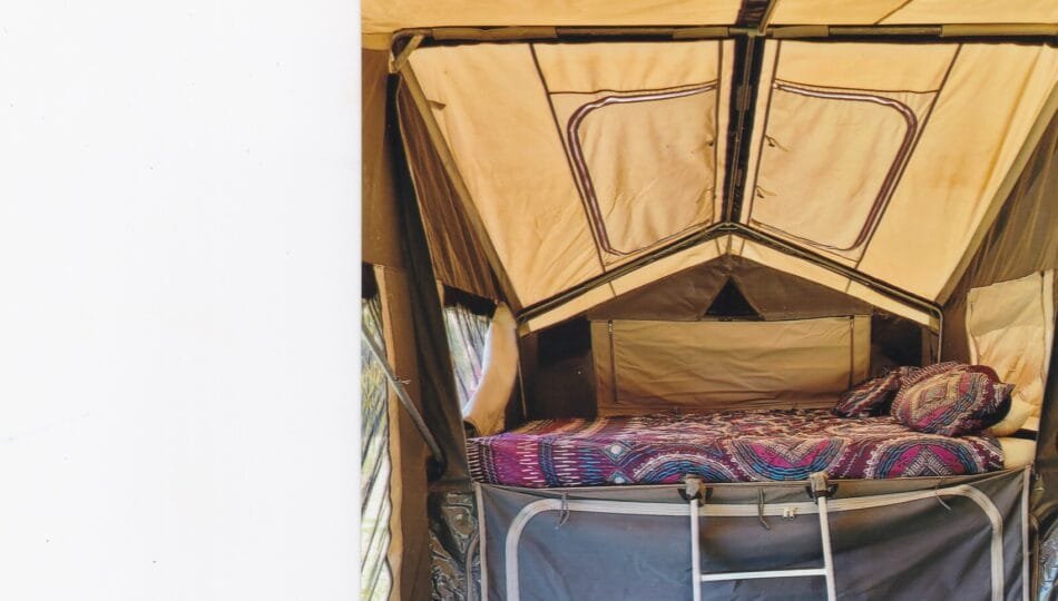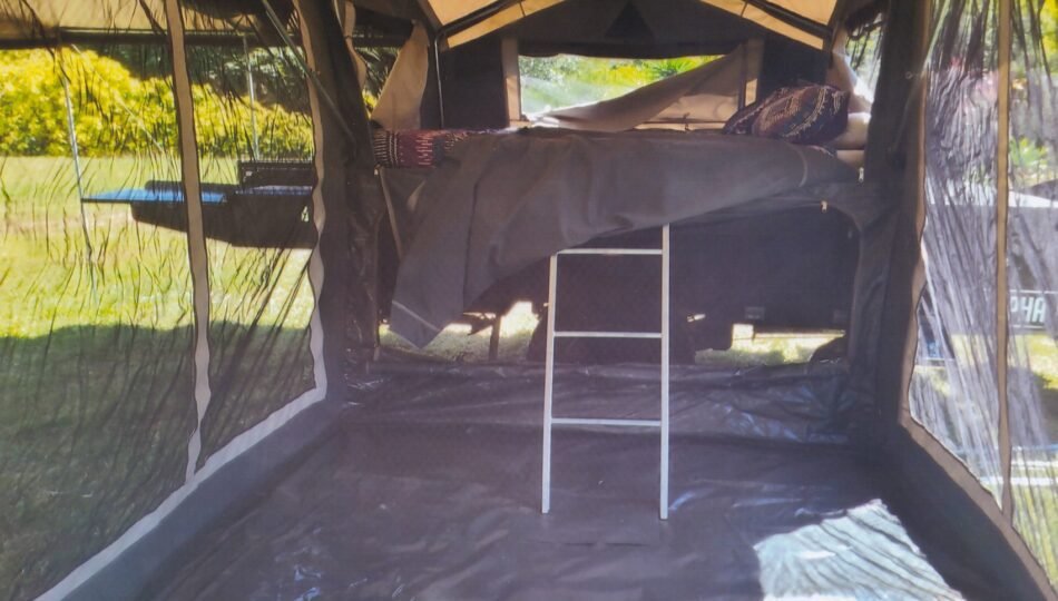 It has a pull-out kitchen with a sink and king size bed. The canvas is in great condition.