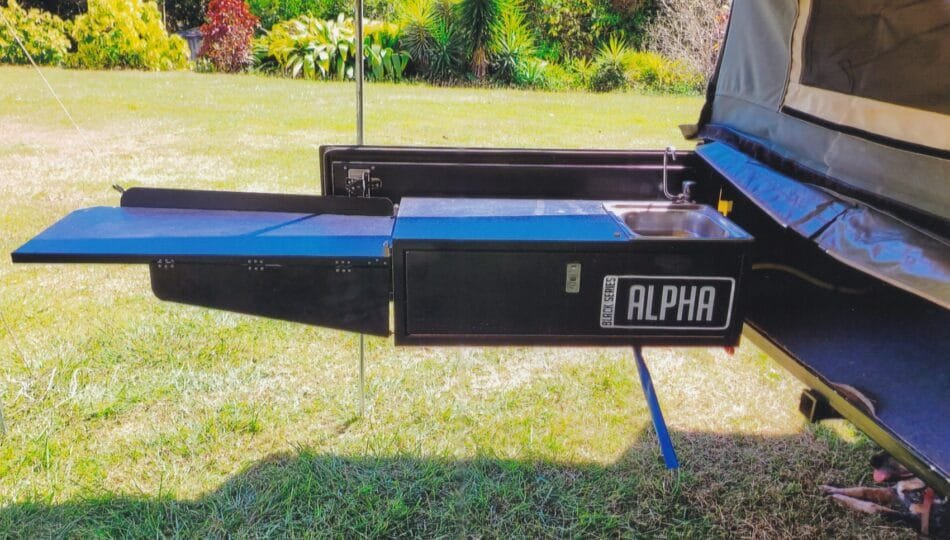 Ready for the family to get out and explore in this 2016 Black Series Alpha Camper Trailer. Lots of space with an extra enclosed annex and an extra storage box with generator/fridge slide.