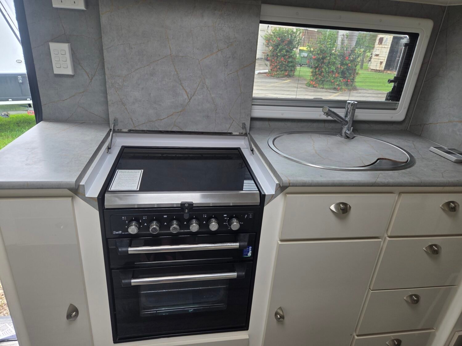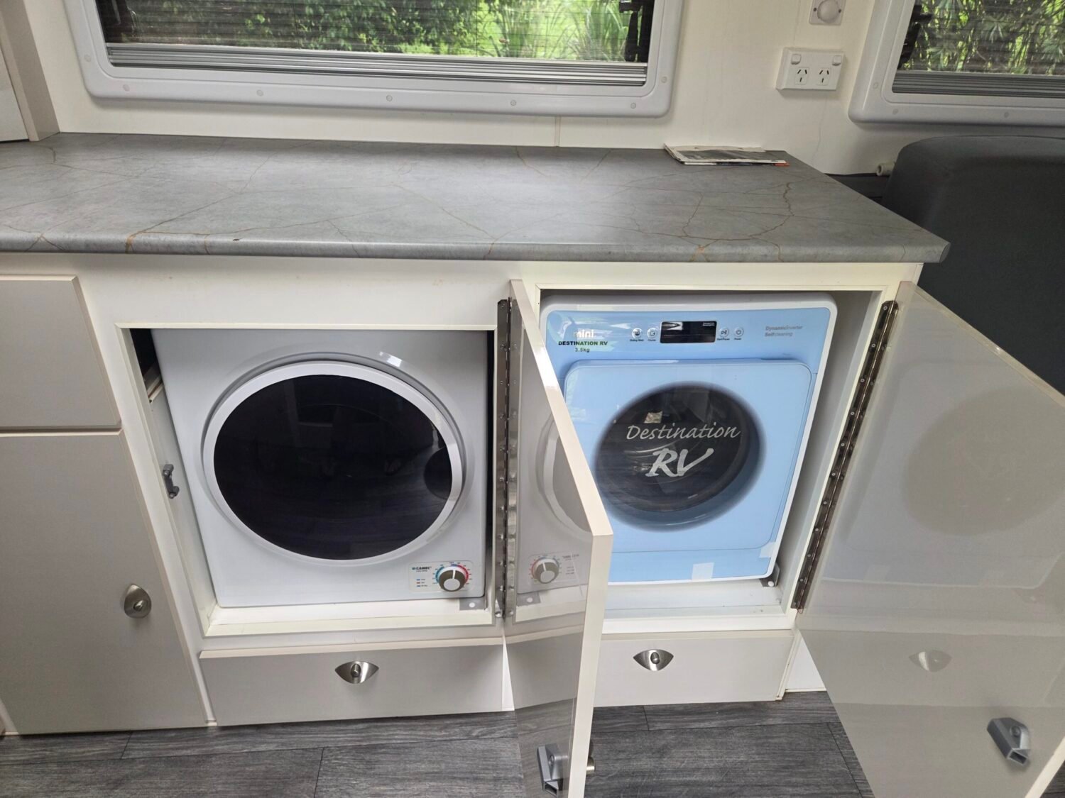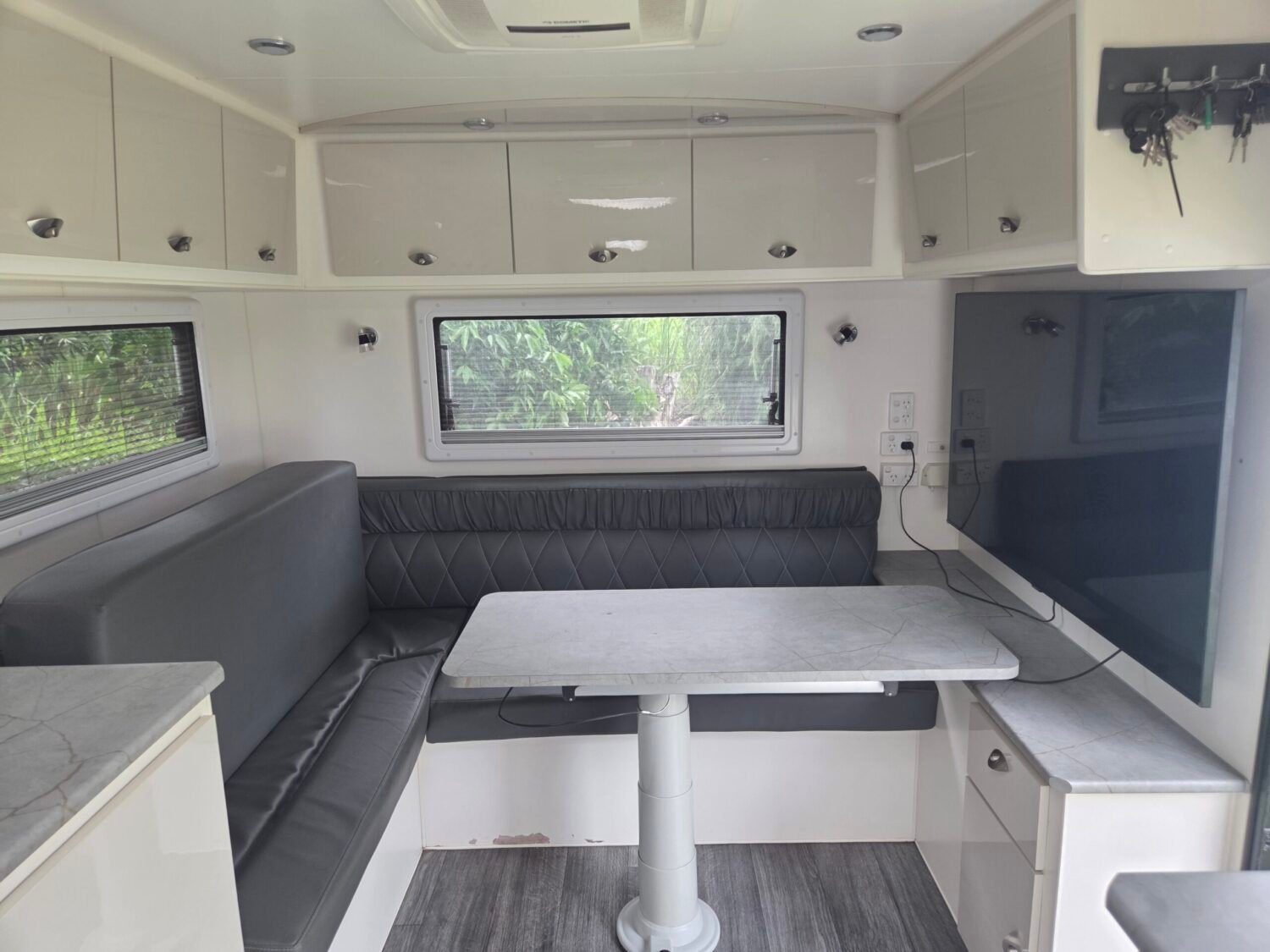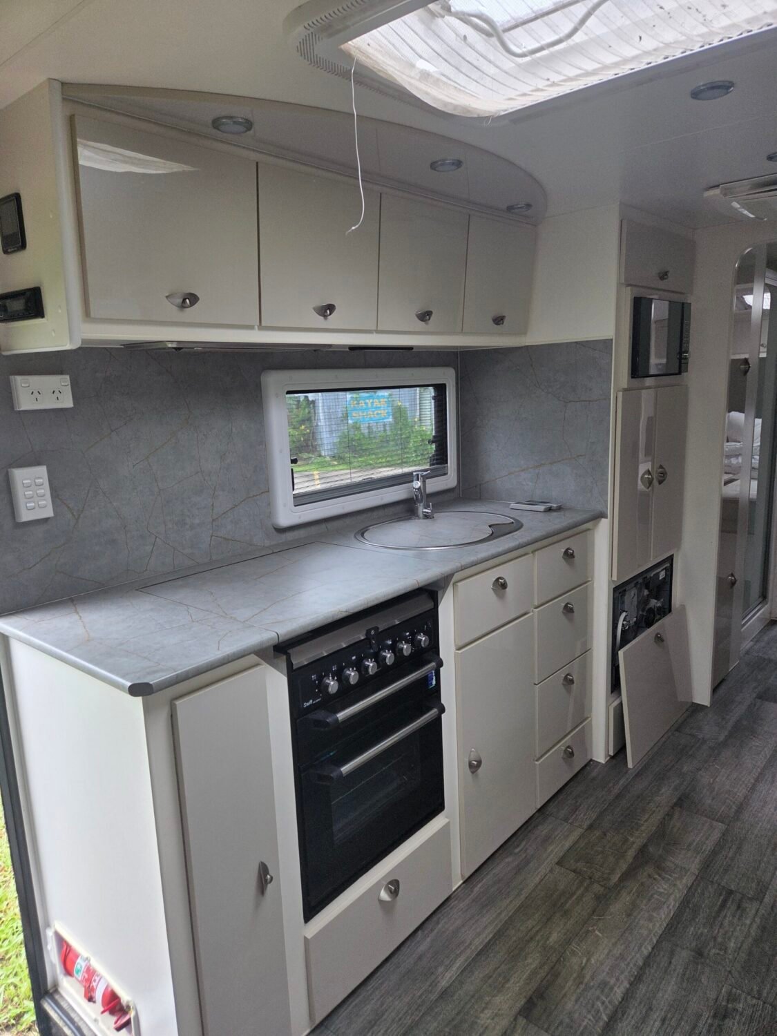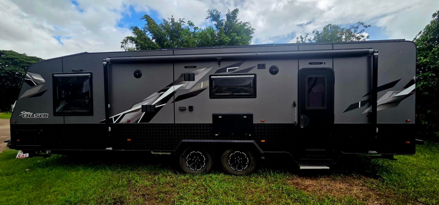 This 2021 27FT Grand GM Storm Chaser caravan presents like new. Whether you want to travel full time or just for a weekend, this van has everything you need for an offroad adventure. This well laid van comes with all the comforts of home the interior comes with a queen bed, large separate toilet and shower ensuite, washing machine, dryer, air conditioning, full kitchen with stove top, grill and oven, microwave, large 3-way fridge/freezer, gas/electric hot water system, microwave, 2 televisions.