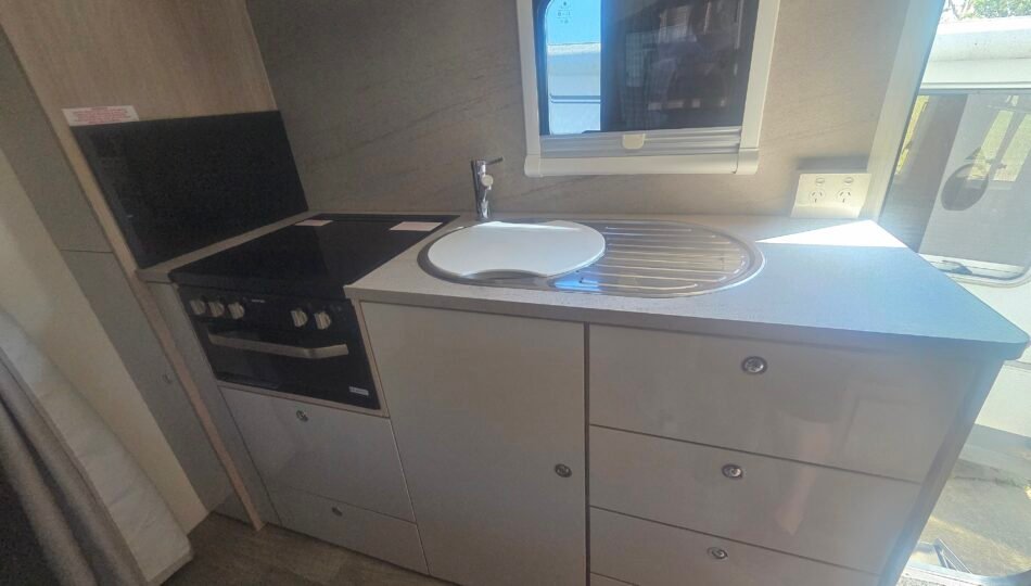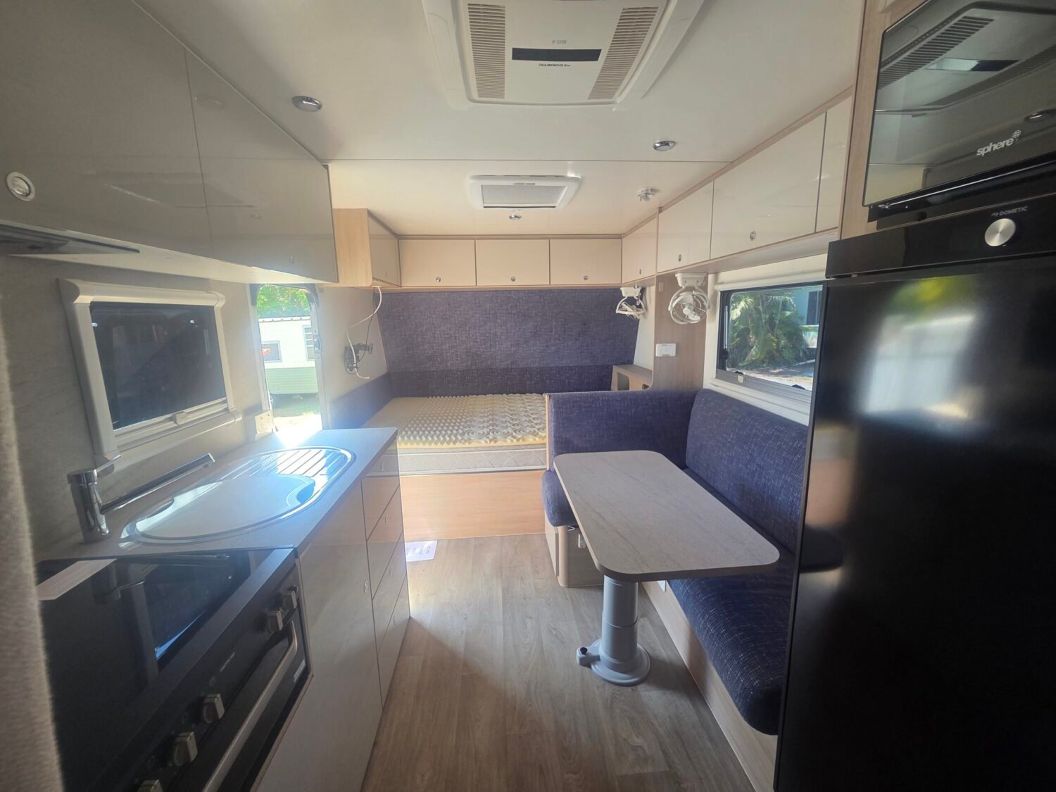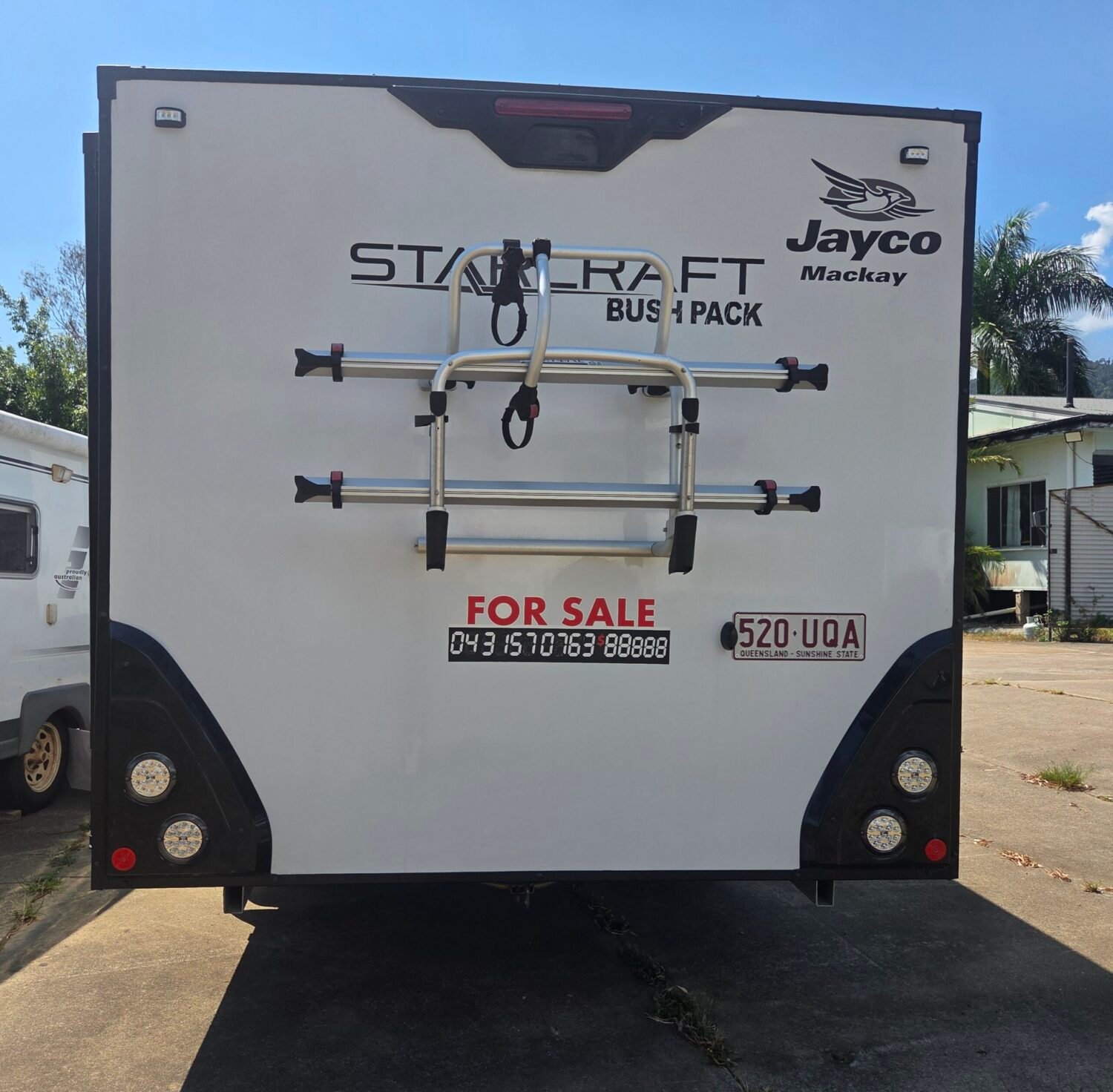 This 2022 19ft Jayco Starcraft family caravan presents like new. Perfect for weekends away or longer family holidays. Very well-presented van with all the comforts of home. There is plenty of room for the kids or grandkids with a double bed, and double bunk bed. With air conditioner, 5 sirocco fans, large 3-way fridge, cooktop/grill, microwave, separate shower/toilet ensuite, washing machine and tv. Equipped with awning, solar panels, lithium batteries, gas bottles, tow ball hitch lock, wheel lock and double bike racks.