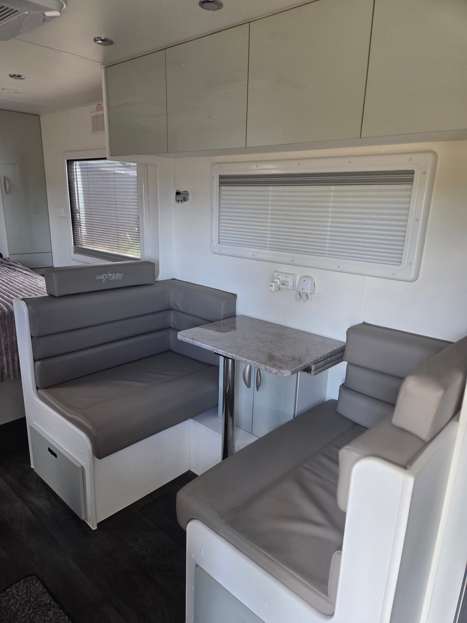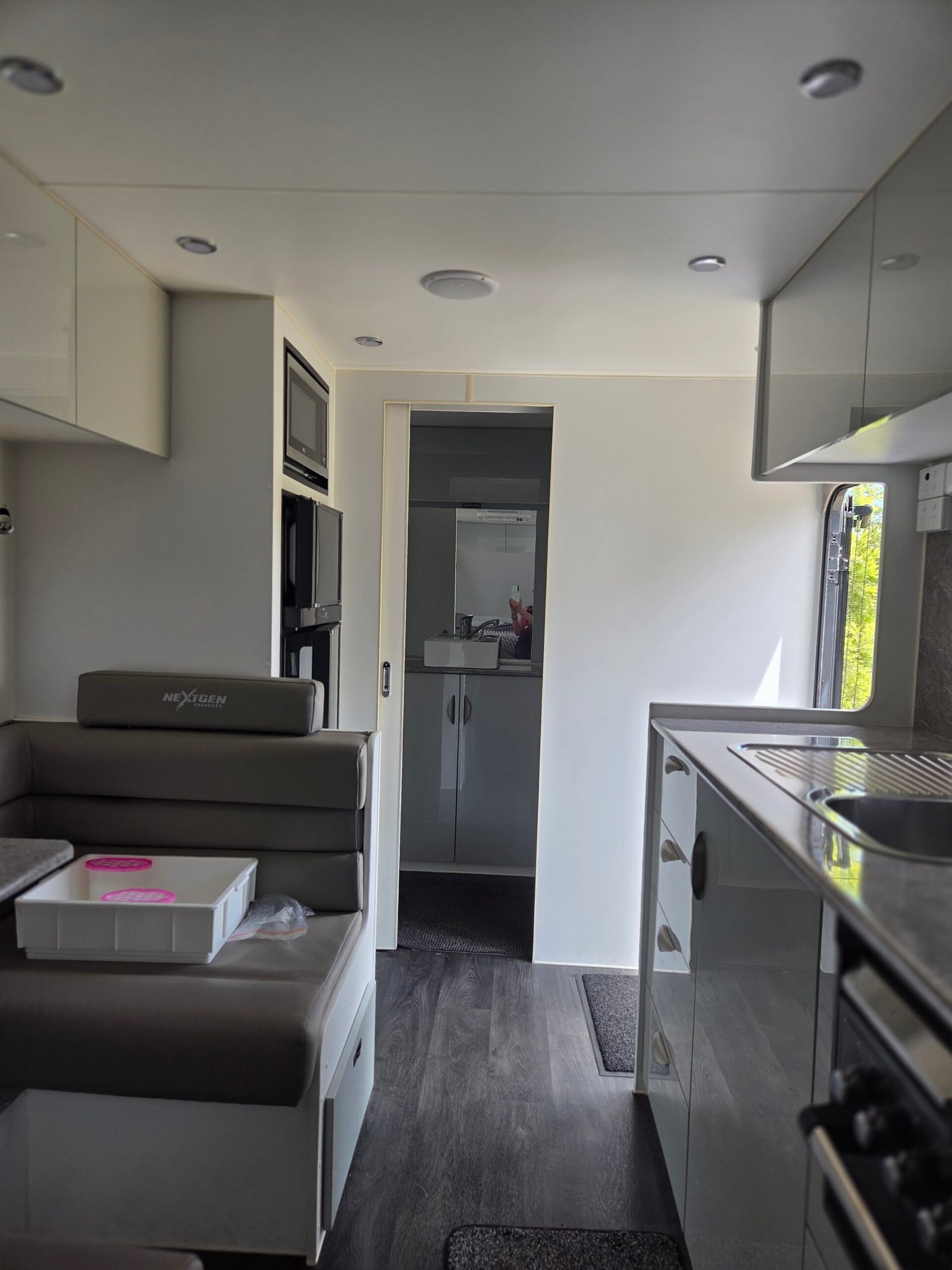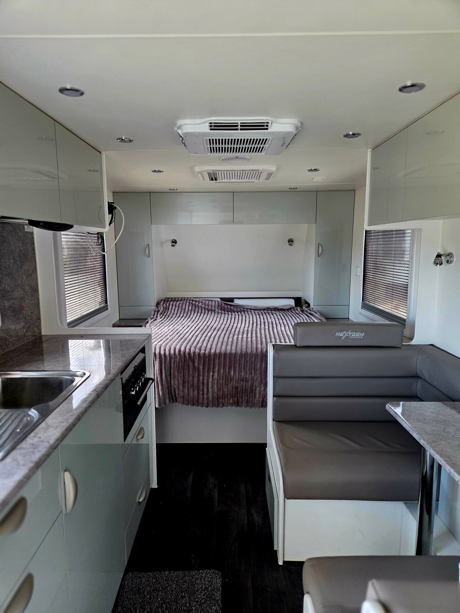 This 2023 19’6 Nextgen offroad caravan presents like new. Whether you want to travel full time or just for a weekend, this van has everything you need to go off the beaten track. With all the comforts of home the interior comes with a queen bed, separate toilet and shower ensuite, washing machine, sirocco fans, air conditioning, 4 burner stove top with grill, large 3-way fridge/freezer, microwave, tv, and double seats with fold away table. The kitchen comes complete with crockery, saucepans, utensils, toaster and kettle.