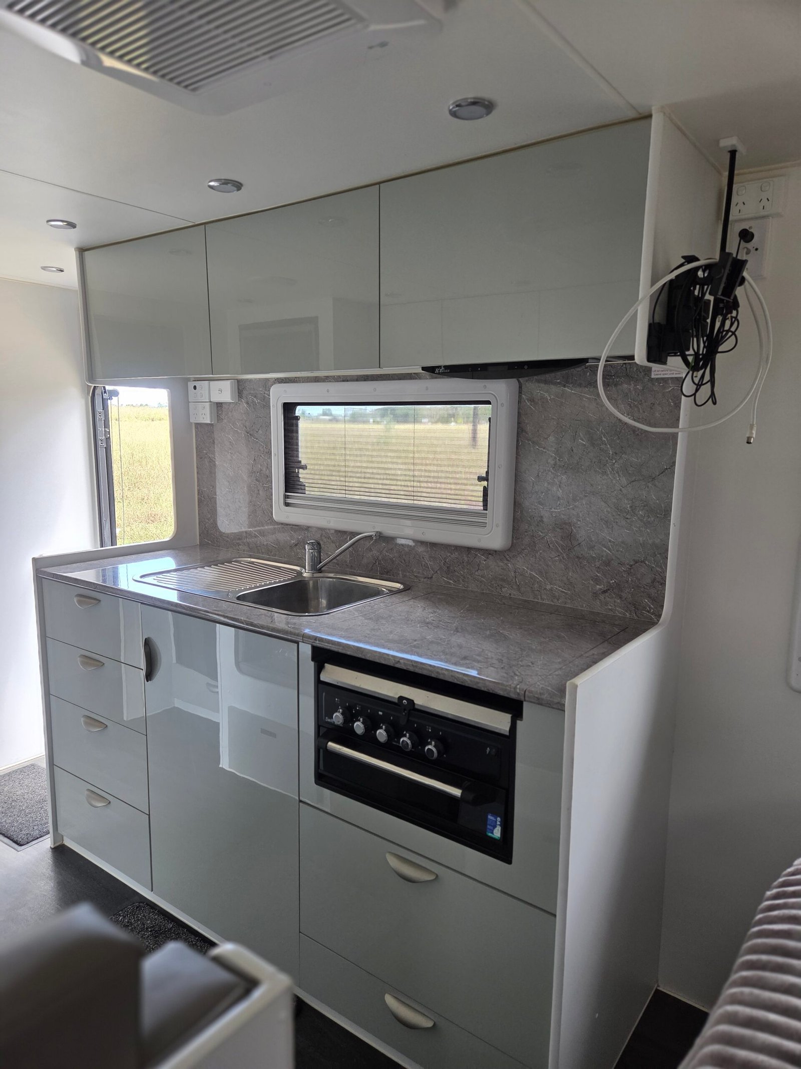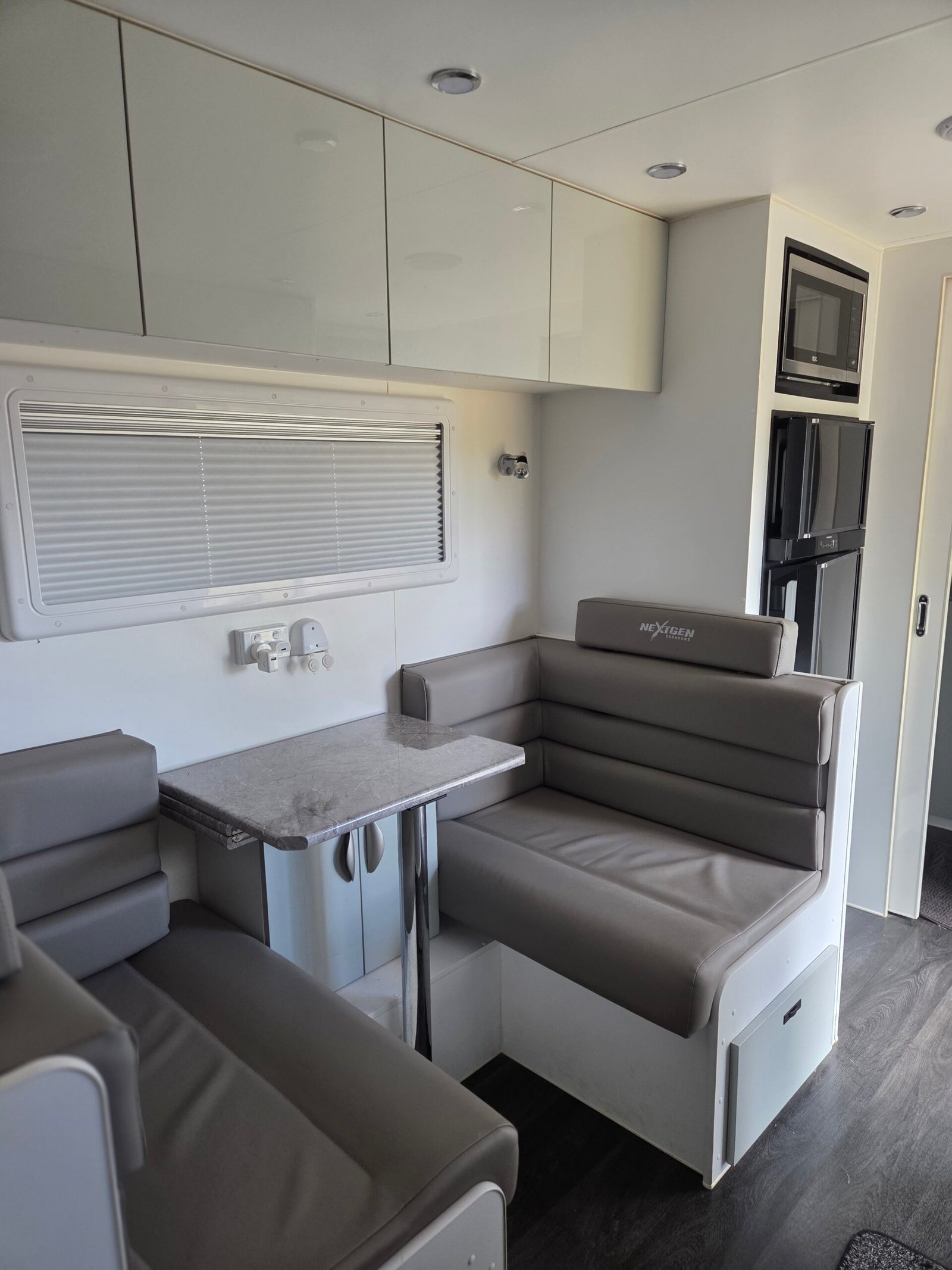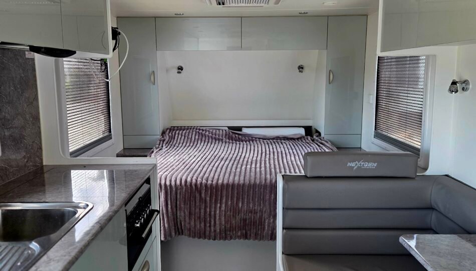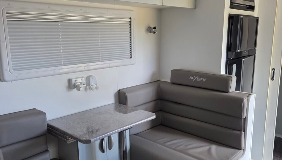 This 2023 19’6 Nextgen offroad caravan presents like new. Whether you want to travel full time or just for a weekend, this van has everything you need to go off the beaten track. With all the comforts of home the interior comes with a queen bed, separate toilet and shower ensuite, washing machine, sirocco fans, air conditioning, 4 burner stove top with grill, large 3-way fridge/freezer, microwave, tv, and double seats with fold away table. The kitchen comes complete with crockery, saucepans, utensils, toaster and kettle.